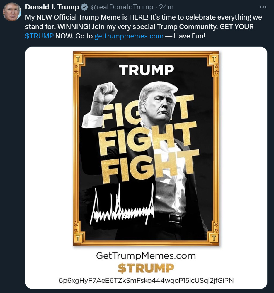 今天早些时候,特朗普在他的官方 X 账号上发布了一款以他名字命名的 Meme Token 的合约地址。无论这是否是骗局,现在已经无关紧要了。