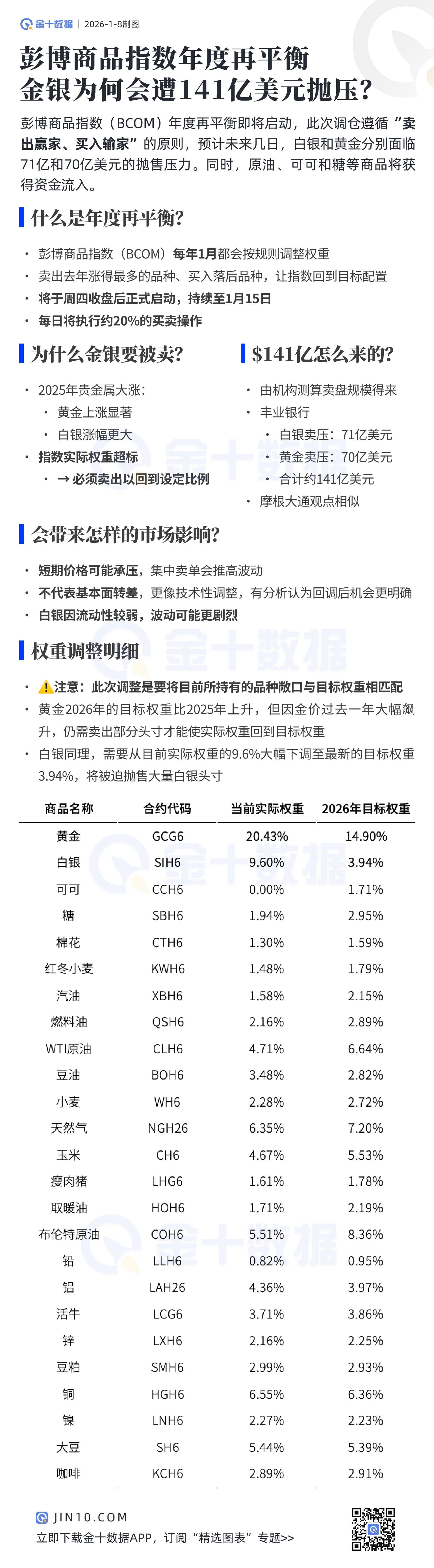 金银为何会遭141亿美元抛压?彭博商品指数年度再平衡,一图看懂